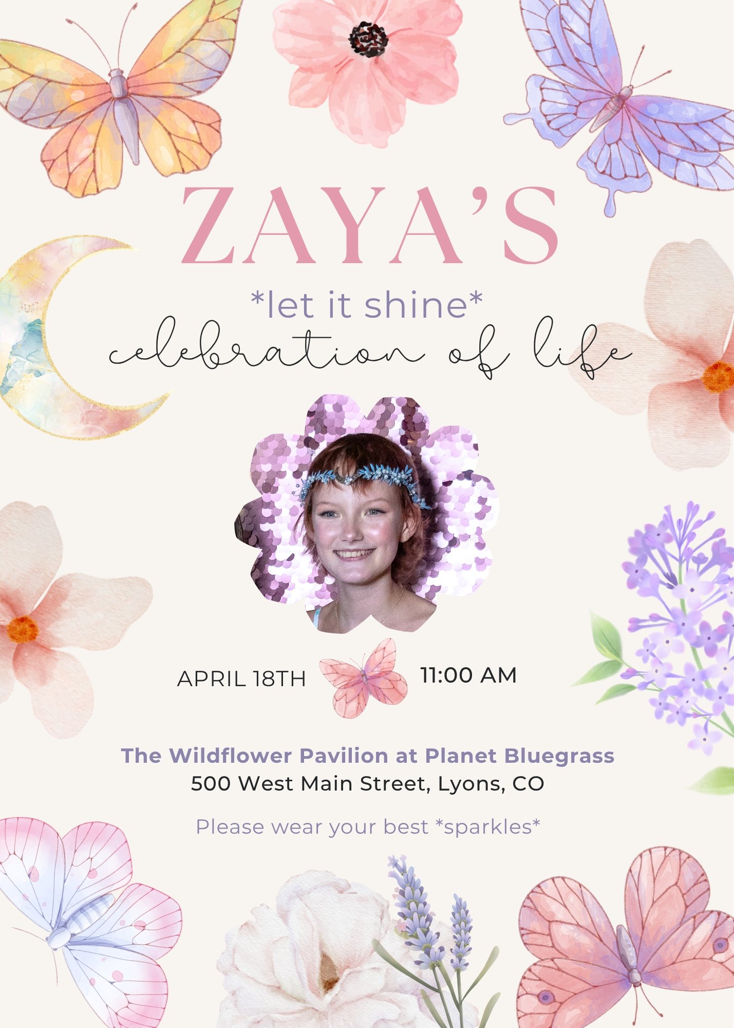 In July 2024 Zaya was diagnosed with metastatic Ewing Sarcoma. This is a rare cancer, difficult to treat when it is metastatic at presentation. Zaya had a complete response to her initial treatment at Children’s Hospital Colorado. Unfortunately, 8 months after completing treatment her surveillance scans revealed recurrence and further spread of her cancer - a pattern that is consistent with an aggressive Ewing Sarcoma.